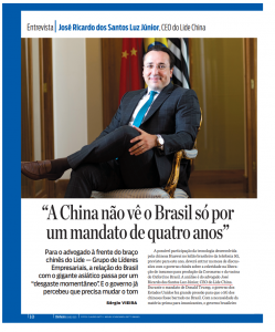 Em entrevista à Istoé Dinheiro, José Ricardo dos Santos Luz Júnior, gerente institucional do BNZ Advogados e CEO do Lide China, analisa diversos aspectos da relação entre o Brasil e a China. Segundo o especialista, a relação está passando por um “desgaste momentâneo”, e que o governo brasileiro já percebeu que deverá rever sua postura.