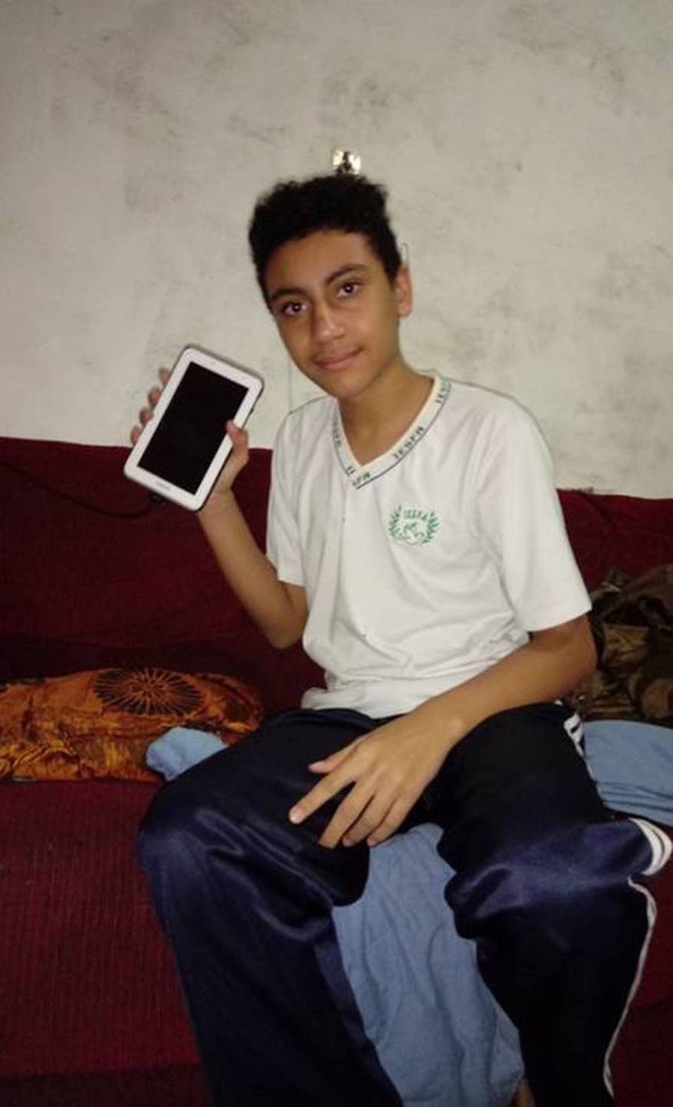 O motivo é que o aplicativo só funciona em celular – e o menino não tinha um. Para driblar o problema, Josineia Guedes Pereira, a Josi, mãe do estudante, teve de pedir emprestado o aparelho da sogra, que mora no mesmo terreno.
