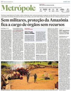 Nesta semana, ao falar sobre o fim da operação militar Verde Brasil 2, o vice-presidente Hamilton Mourão disse que, em um ano de atuação, a empreitada militar terá consumido R$ 410 milhões. Mourão comemorou os resultados e disse que “não é uma operação extremamente cara”. O fato é que, para além dos recursos destinados à Verde Brasil 2, as Forças Armadas receberam R$ 530 milhões oriundos de acordos que a Petrobrás fez no âmbito da Lava Jato e que, por decisão do Supremo Tribunal Federal, deveriam ser empregados na proteção da Amazônia.