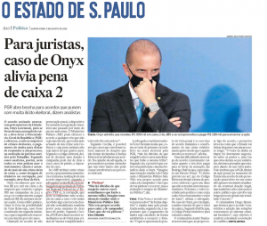 “A avaliação (quanto ao acordo de não persecução penal) caberá ao Ministério Público, então você vê que é um papel importante, tanto para um lado quanto para o outro. Imagine uma situação similar à do Onyx onde o Ministério Público fale que ‘não vou propor acordo para caixa 2 de campanha’. Claro que ele vai pleitear e recorrer, mas você vê que cai numa avaliação do Ministério Público”, diz.