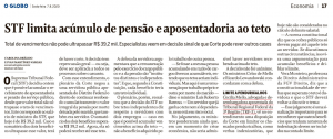 – O julgamento foi específico para o caso de acúmulo de pensão com aposentadoria ou remuneração, mas sem dúvida é um caminho bem pavimentado para que o STF trate também do acúmulo de outras remunerações, que a própria Corte no passado entendeu que não entravam na conta – diz o advogado Giuseppe Giamundo Neto.